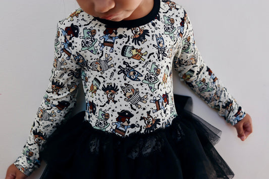 Spooky Sisters Bluey Bamboo Zipper Romper