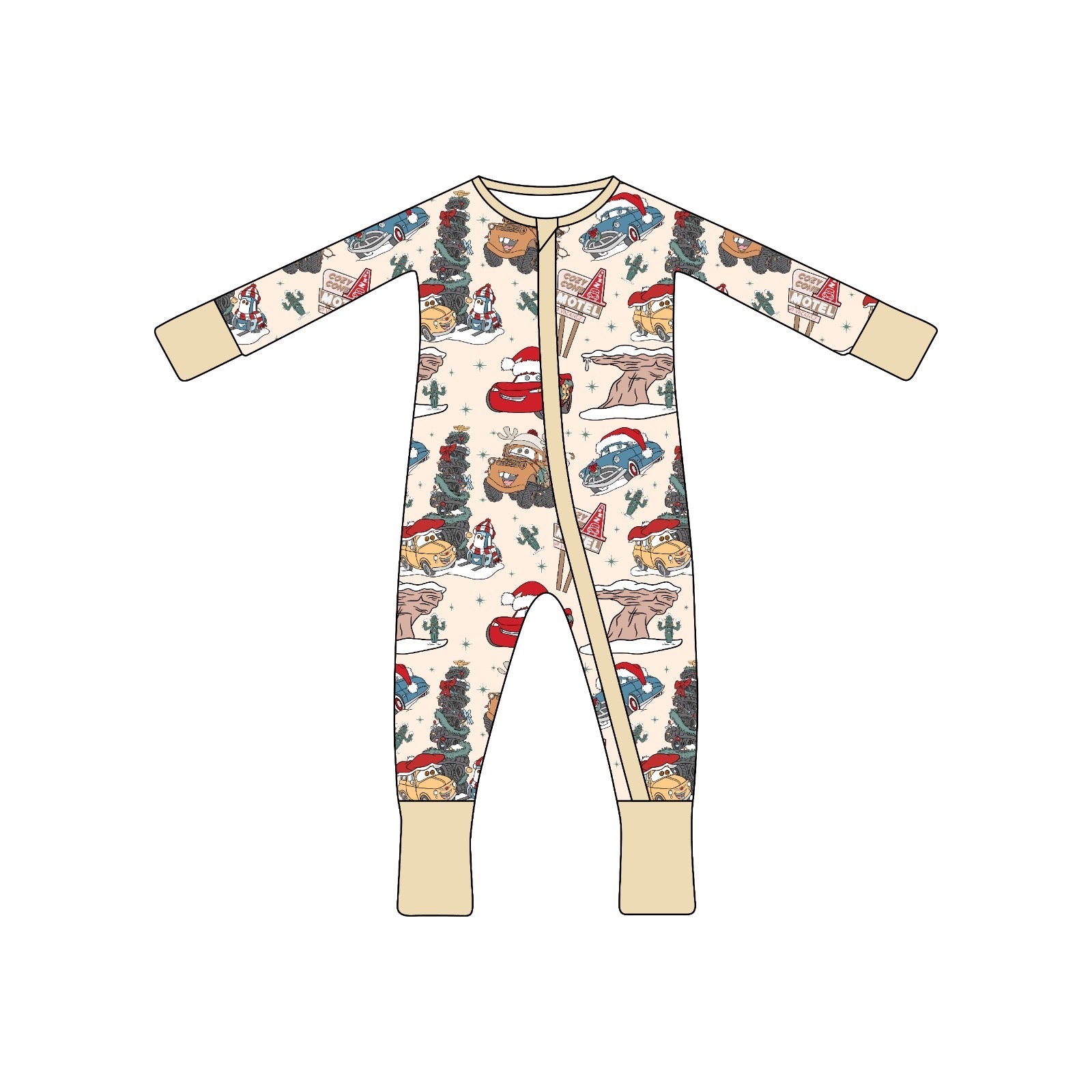 Get ready for the holiday season with our Jolly Springs Ribbed Bamboo Infant Zipper Romper—the perfect pajamas for your little racer! Inspired by the iconic characters from Cars, this festive design features Lightning McQueen, Mater, and fun holiday-themed accents in bold, playful colors. It’s the perfect way to celebrate the holidays with your little one while keeping them cozy and stylish.